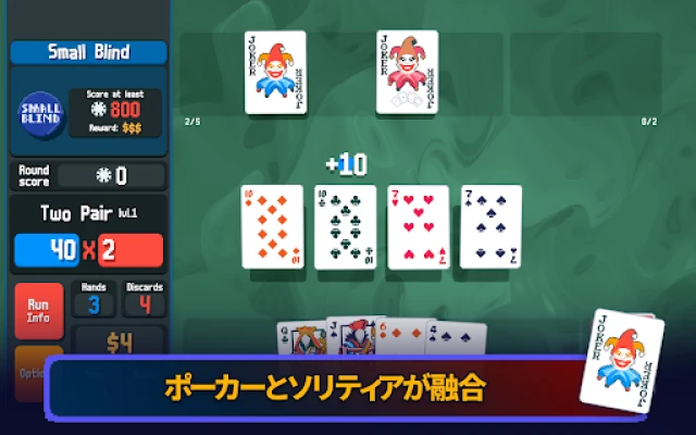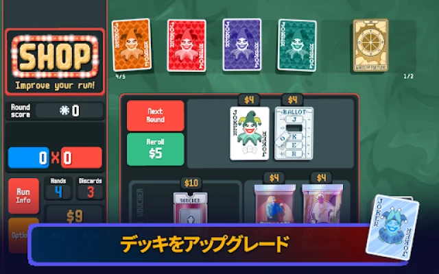Balatroは、ソリティアとポーカーを革新的に融合させた、中毒性の高いデッキ構築型ゲームです。ユニークなルール変更と150種以上のジョーカーを駆使し、強力なポーカーハンドでボスを攻略。毎回異なる戦略が楽しめる、奥深いピクセルアートの世界へ。