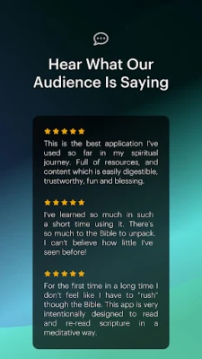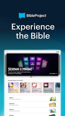 BibleProjectアプリを開けば、あなた自身のペースで聖書を深く探求できる豊富なコンテンツが広がります。「ホーム」画面では、中断した学習をすぐに再開できるため、常にスムーズな学びが保証されます。「探索」セクションでは、何百もの無料動画、ポッドキャスト、そしてクラスがいつでもあなたを待っています。これらすべてに追加料金は一切かかりません。聖書の文学的な美しさを紐解き、その中に隠されたテーマをたどる旅を通じて、あなたの聖書に対する理解は格段に深まることでしょう。特定の宗派に囚われず、聖書の統一されたメッセージに焦点を当てています。