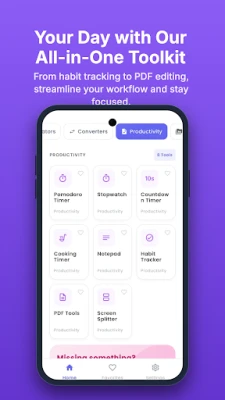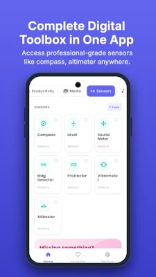 「ToolBox Pro」は、プロフェッショナル、開発者、学生、そして日々の作業に最適なツールを求めるすべての人に向けた、まさにオールインワンのソリューションです。モダンで洗練されたMaterial Design 3のインターフェースを採用し、優れたパフォーマンスのために最適化されており、常にスムーズで直感的な操作性を提供します。80種類を超える厳選されたツール群が、日々のタスクから複雑な問題解決まで、あなたのあらゆるニーズに応えます。